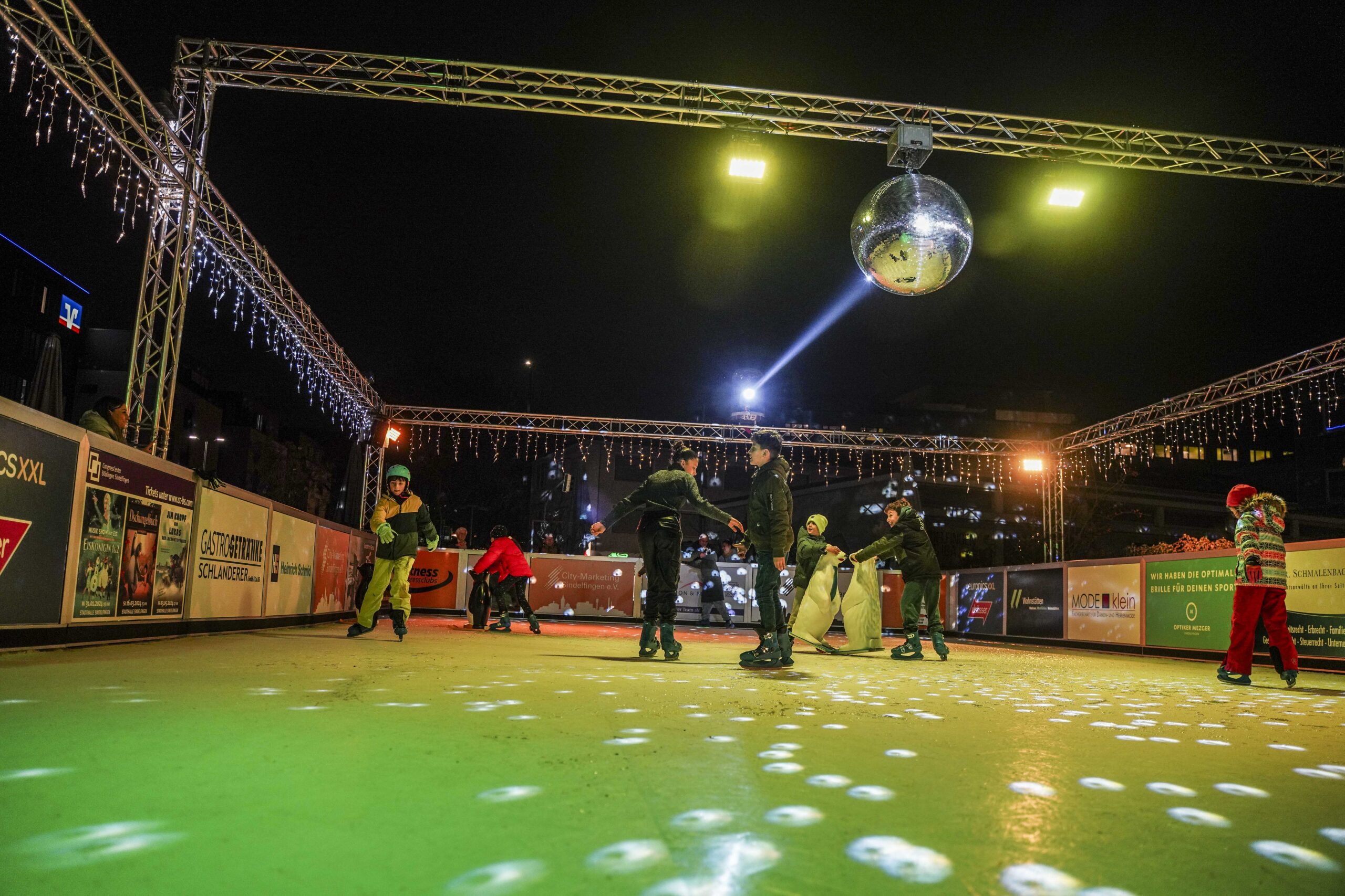 Lassen Sie sich von talentierten Künstlern und stimmungsvollem Gesang verzaubern, während Sie gemütlich auf der Eisfläche oder in der Zuschauerzone verweilen.